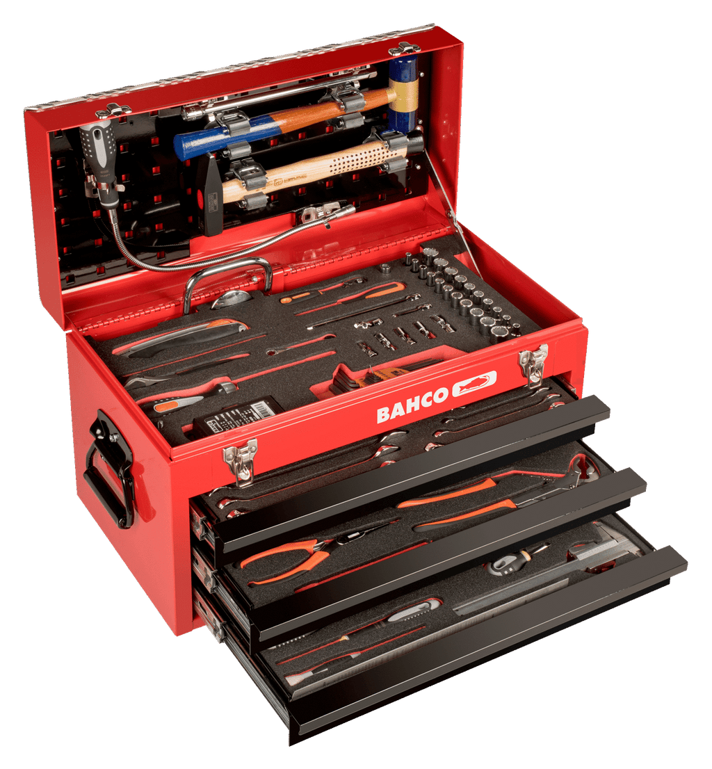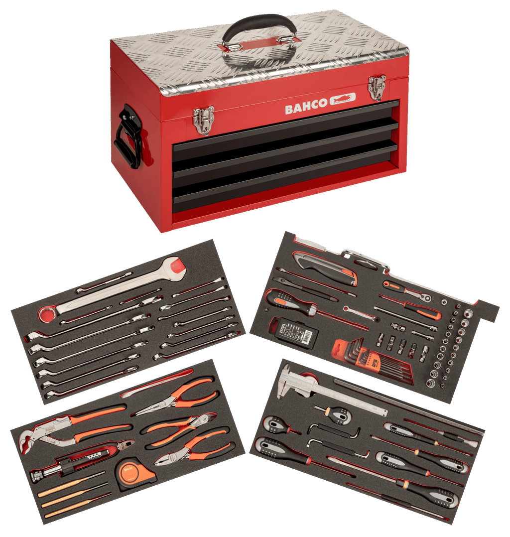 Consists of sockets, spanners, wrenches, screwdrivers, pliers, punches, measuring tools