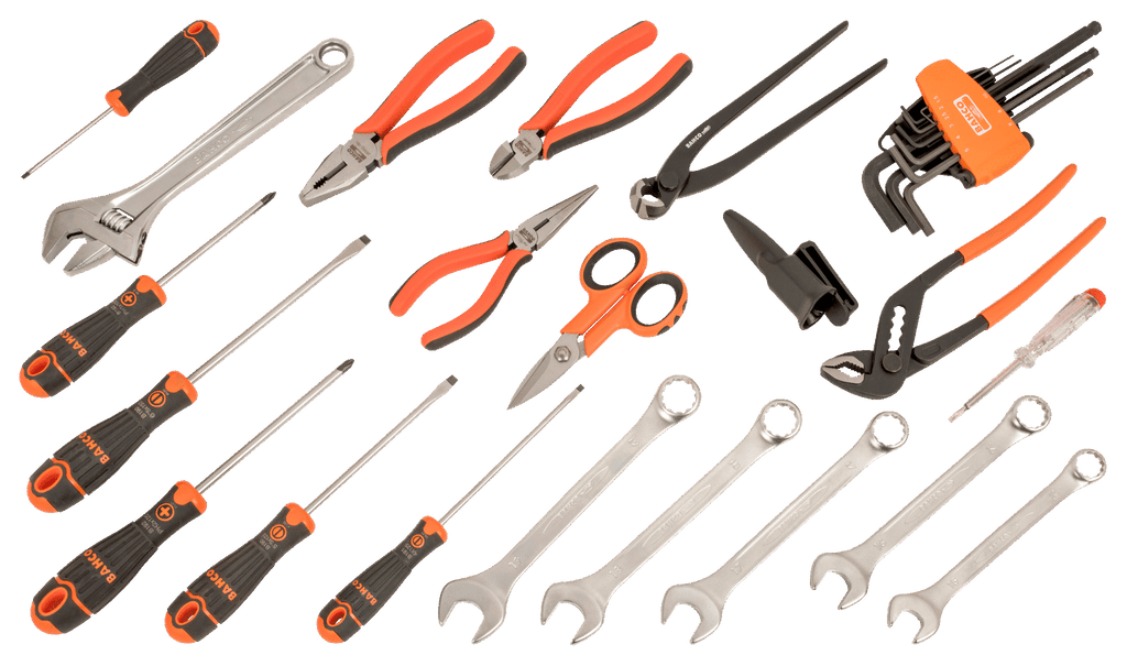 Large variety of tools included: combination wrenches, screwdrivers, 1/4" and 1/2" sockets HEX, striking and cutting tools, pliers, bits