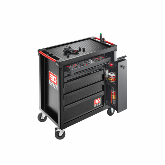Standard drawers for both parts of the table are compatible with the FACOM modular storage system.