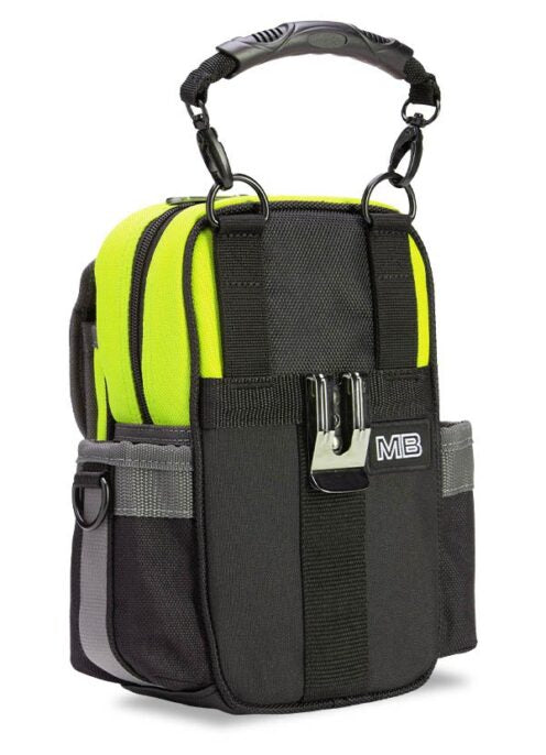 The MB HI-VIZ YELLOW is a compact meter/tool bag that features 10 pockets of various sizes that will accommodate a number of meters and some of the most commonly used tools to diagnose and repair problems on service calls. It also clips on to other Veto tool bags’ tape clip or D-Rings for convenient carrying. This bag has a rugged construction, interior cushioning, heavy duty YKK zippers, and a detachable rubber handle. An optional shoulder strap is sold separately. This bag has hi-visibility orange fabric with reflective accents.